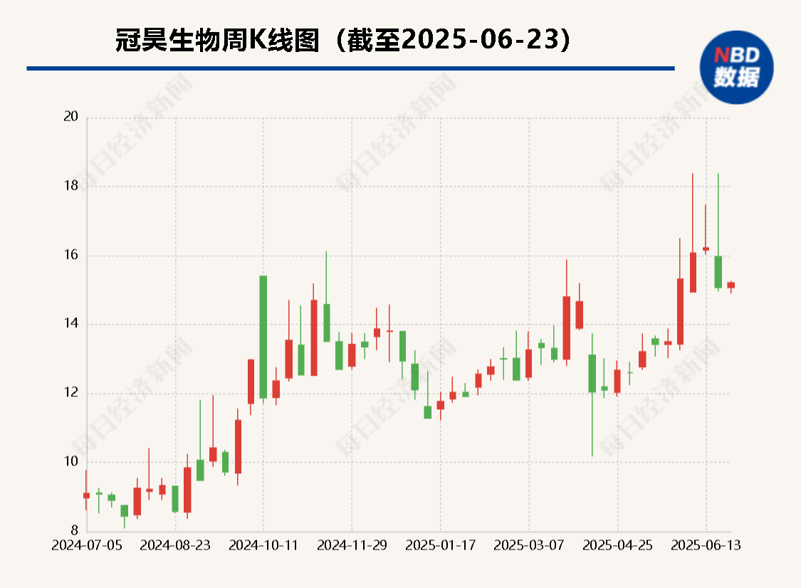 截至6月23日收盘,冠昊生物报15.21元/股,较定增价格已上涨69.75%。