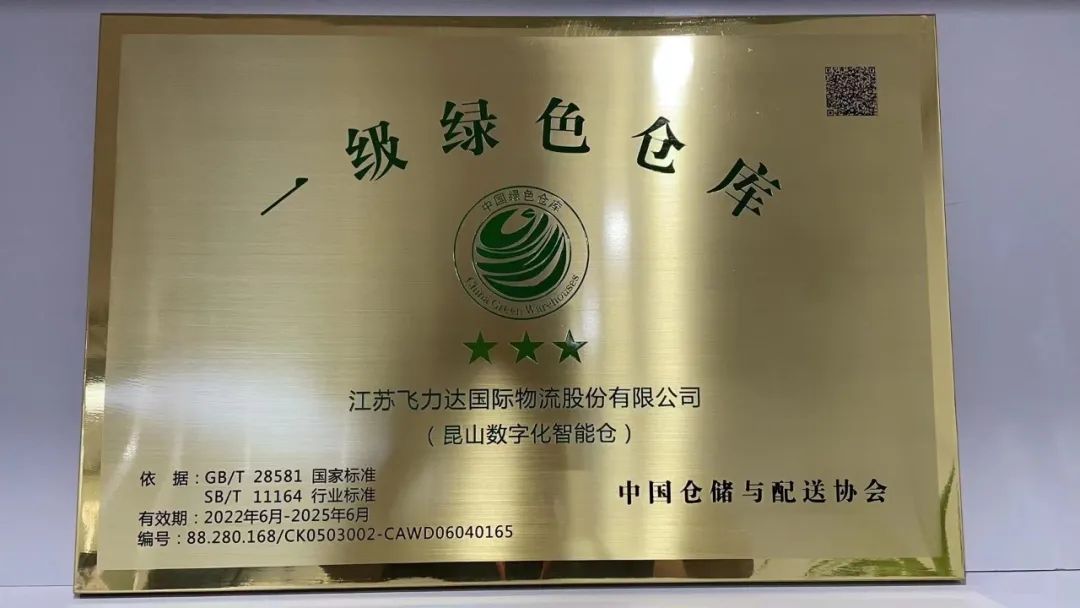 2022年7月,中国仓储与配送协会正式授予飞力达“昆山数字化智能仓”一级(三星)绿色仓库。这是该领域最高等级资质。