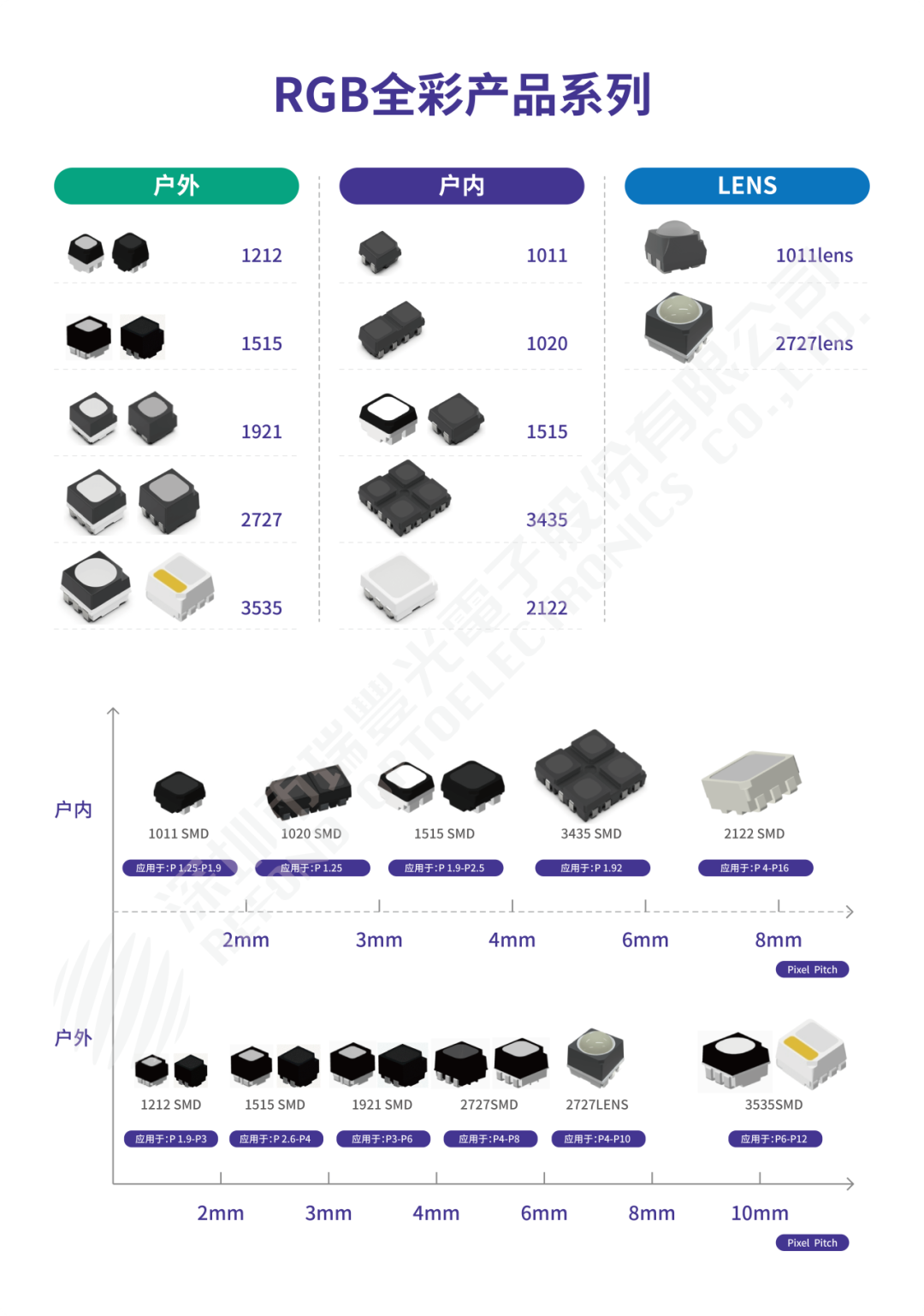 八年多来,瑞丰RGB事业部紧随LED显示市场的变幻和产品更迭,始终聚焦在为LED显示屏客户提供高品质显示LED器件,涵盖户外工程显示、户外小间距显示和户内定制化显示,以及超高亮度的Lens系列RGB光源。