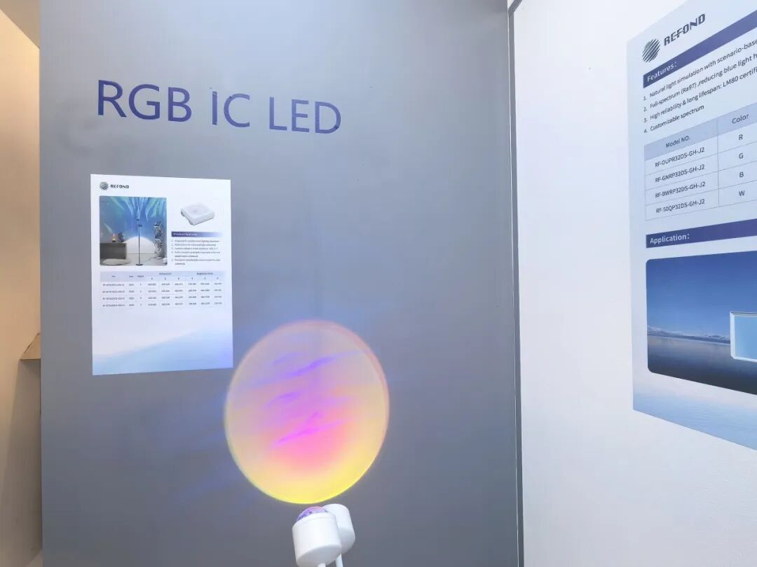 瑞丰光电首次亮相的RGB+IC极光灯,采用高可靠性封装工艺,内置智能IC,支持单点独立控光,哑光质感提升匀光效果,提供2835/3528/3535/5050等多种尺寸选择,为空间带来丰富灵动的光色体验。