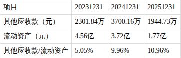 ?其他应收款/流动资产比值持续增长。近三期年报,其他应收款/流动资产比值分别为5.05%、9.96%、10.96%,持续上涨。
