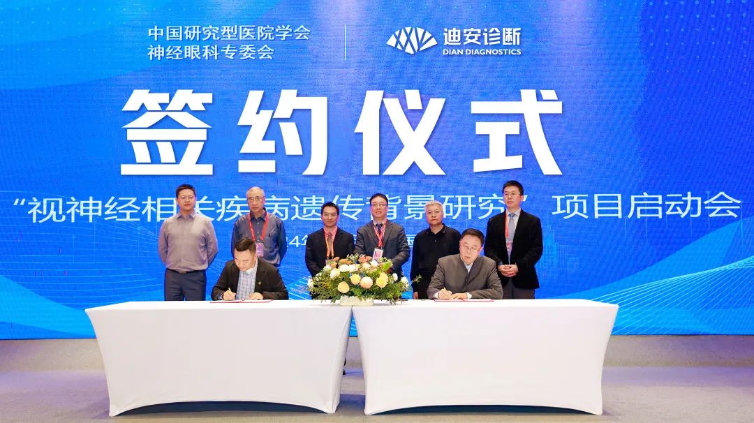 会上,北京迪安与中国研究型医院学会神经眼科专委会共同举行“视神经相关疾病遗传背景研究”项目启动会,并签署《视神经相关疾病遗传背景研究》合作协议。