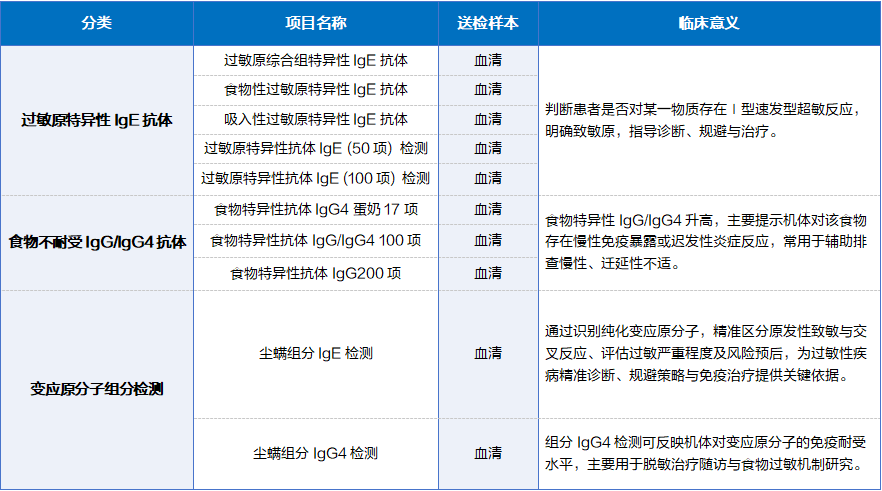迪安诊断将自身技术优势、服务体系与联盟区域防控需求深度融合,依托完善且多样化的过敏原检测平台,打造过敏原IgE检测、变应原分子组分检测、食物特异性IgG/IgG4、哮喘风险及个体化用药基因检测、遗传性血管性水肿相关基因检测等多个项目,构建从筛查、诊断到疗效监测的全流程检测方案,可满足不同年龄、不同症状患者的个性化需求。