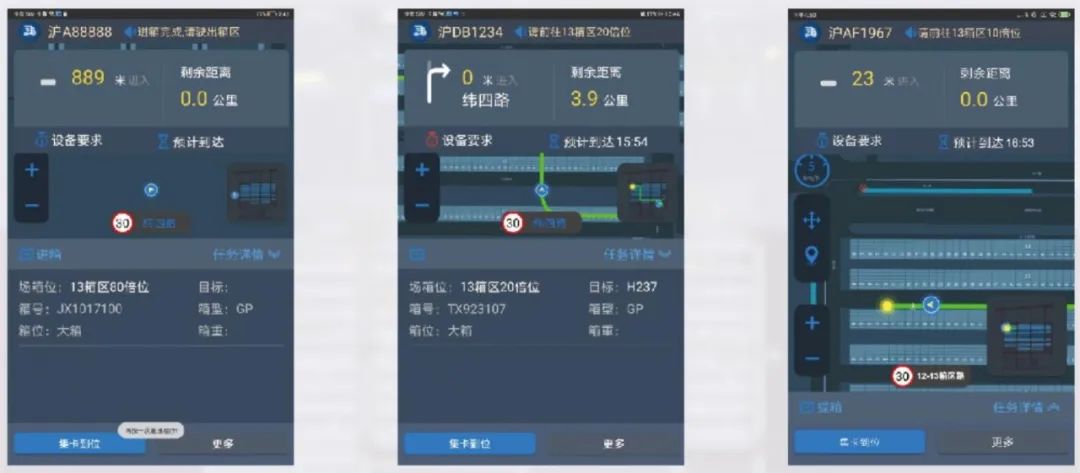 集卡港区宝APP是天玑针对外集卡研发的智能化管理和作业系统。集卡港区宝APP引入了5G+北斗高精度定位系统,并对港区移动桥吊、轮胎吊/轨道吊等强干扰区域做了移动校准和融合定位,同时导入专为港口业务定制的高精度作业地图,通过5G无线终端对单点或多点车辆进行实时定位管控、工作任务发送、路径规划导航、应急信息推送等功能,实现有人驾驶内/外集卡等水平运输车辆的实时可视化管理。