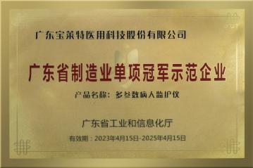 近年来,宝莱特用自身产品创新力推动行业变革的同时,凭借多元品牌营销及渠道覆盖,同时加快肾病医疗领域赛道内冲刺速度。其中,监护仪产品荣获广东省工业和信息化厅关于开展2022年省级制造业单项冠军企业。