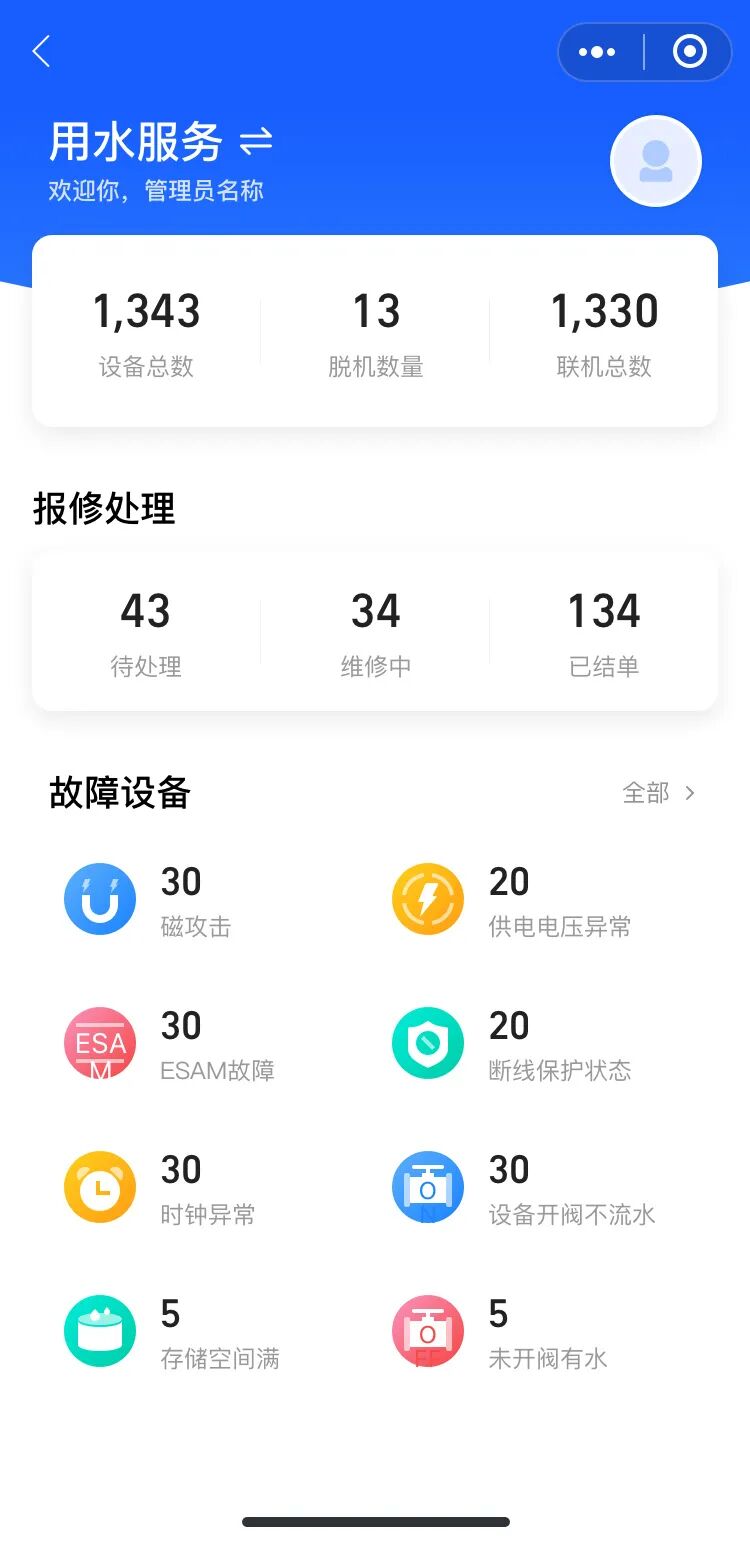 实时监测设备故障、违规用水、低消费、脱机等异常,即时推送多端预警,保障高效响应处置。