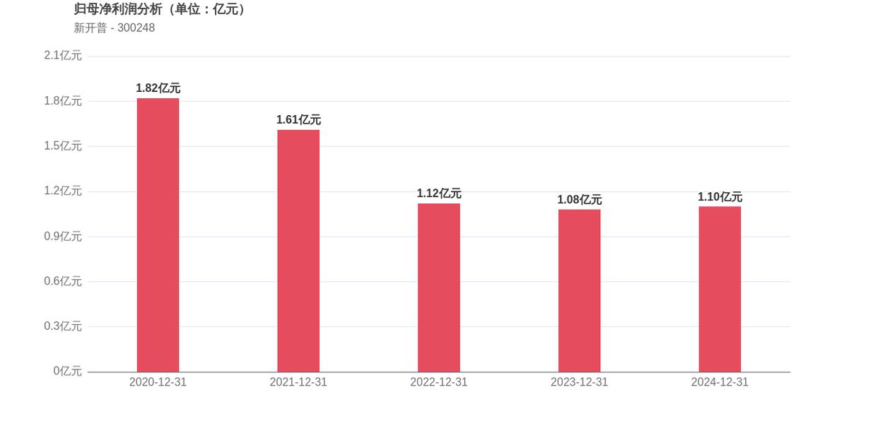 利润角度分析,2020年新开普实现归母净利润1.82亿元,2024年1.10亿元。近年来利润水平有所下降,盈利能力承受一定压力。