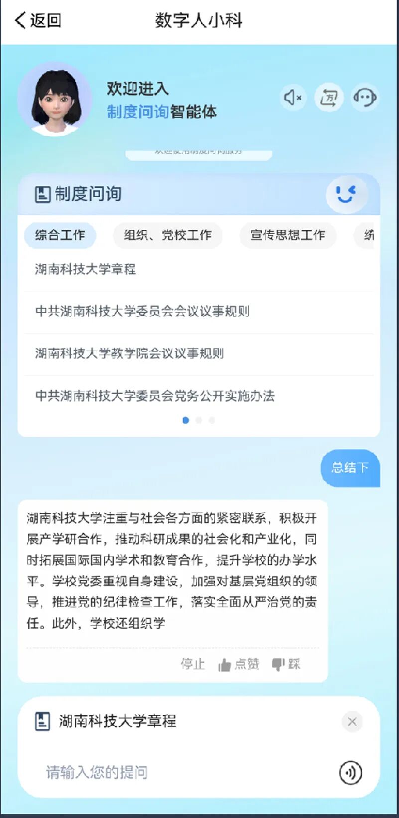 湖南科技大学“数字人小科”