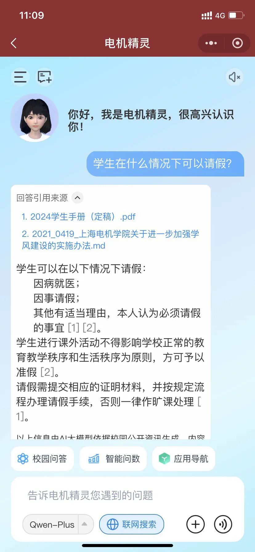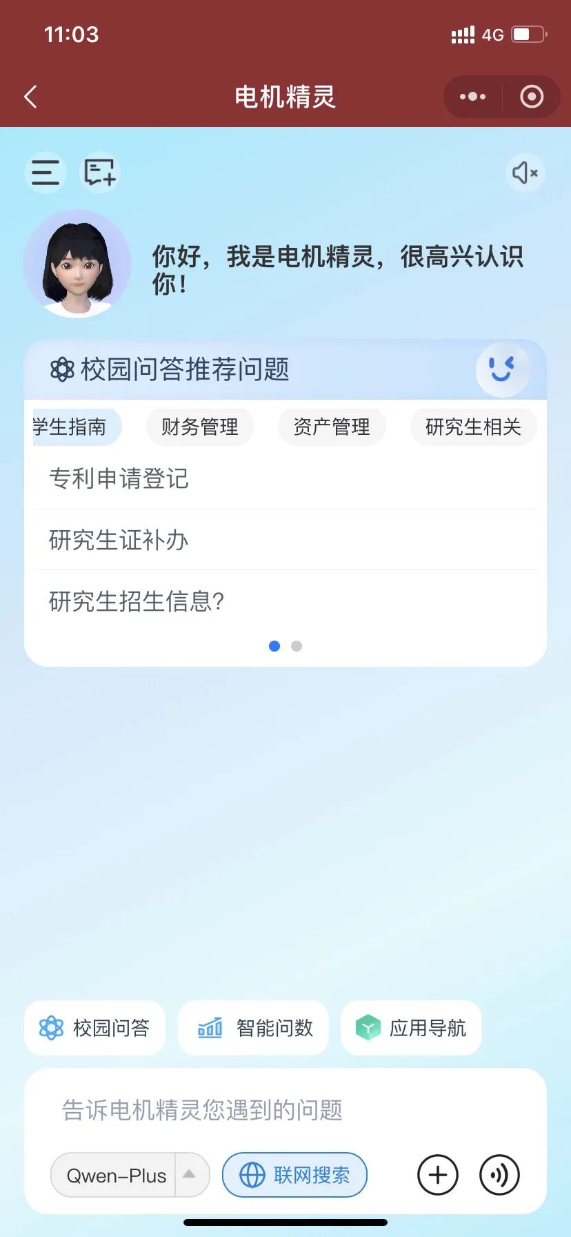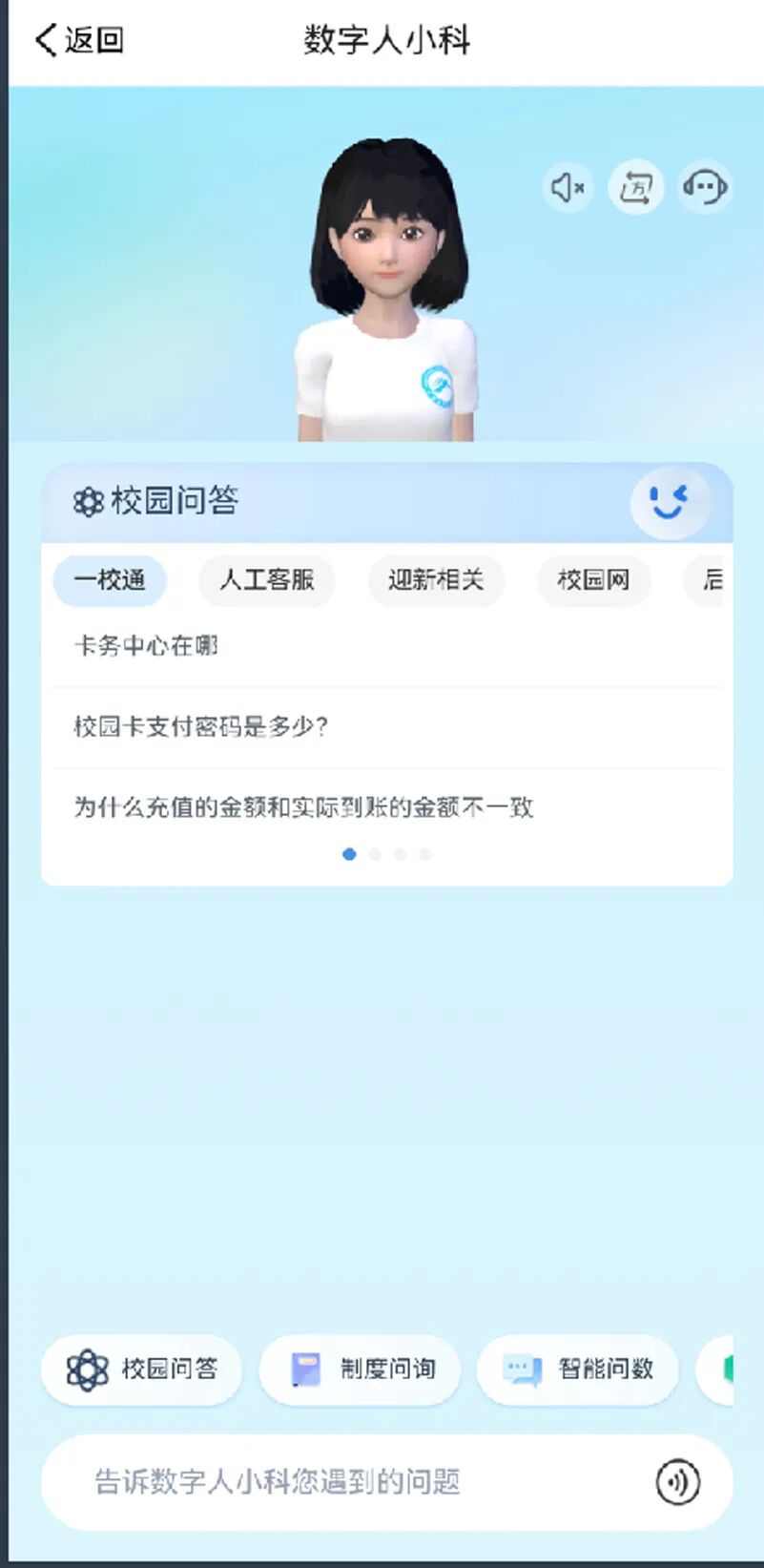 依托大语言模型、数字人、语音识别与语义理解技术,构建“场景+数据+技术”深度融合的智能服务体系,覆盖一校通、一网通办、学生服务等多元应用场景,以7×24小时不间断智能问答服务,精准解析并高效响应师生需求。