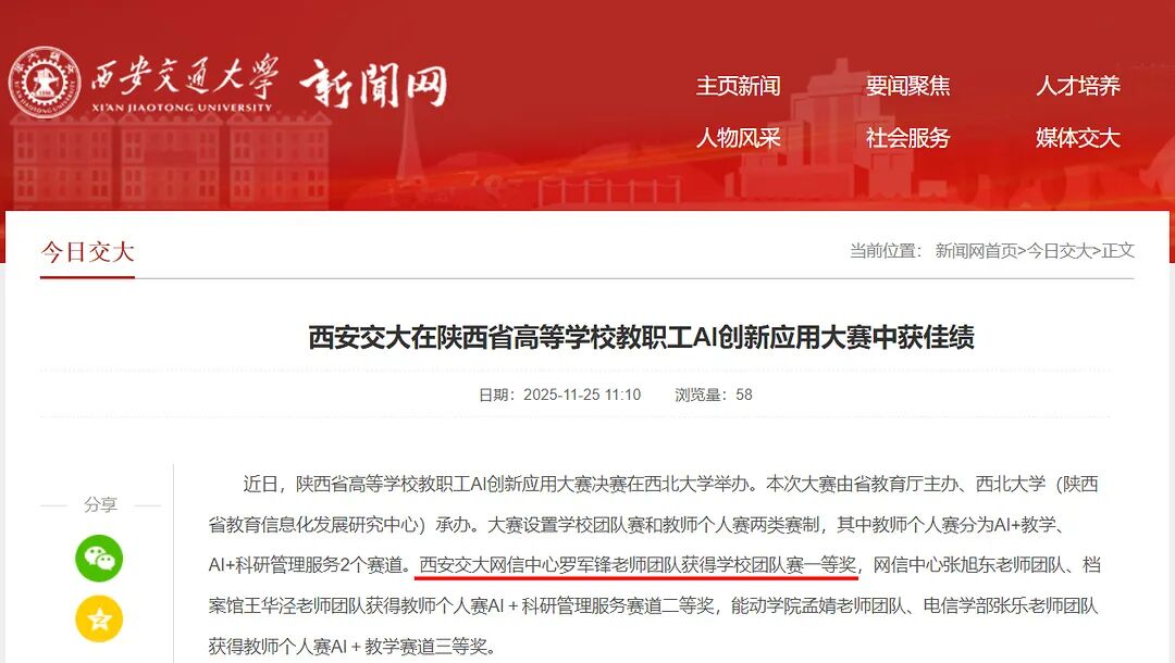 荣获陕西省高校教职工AI创新应用大赛团队一等奖