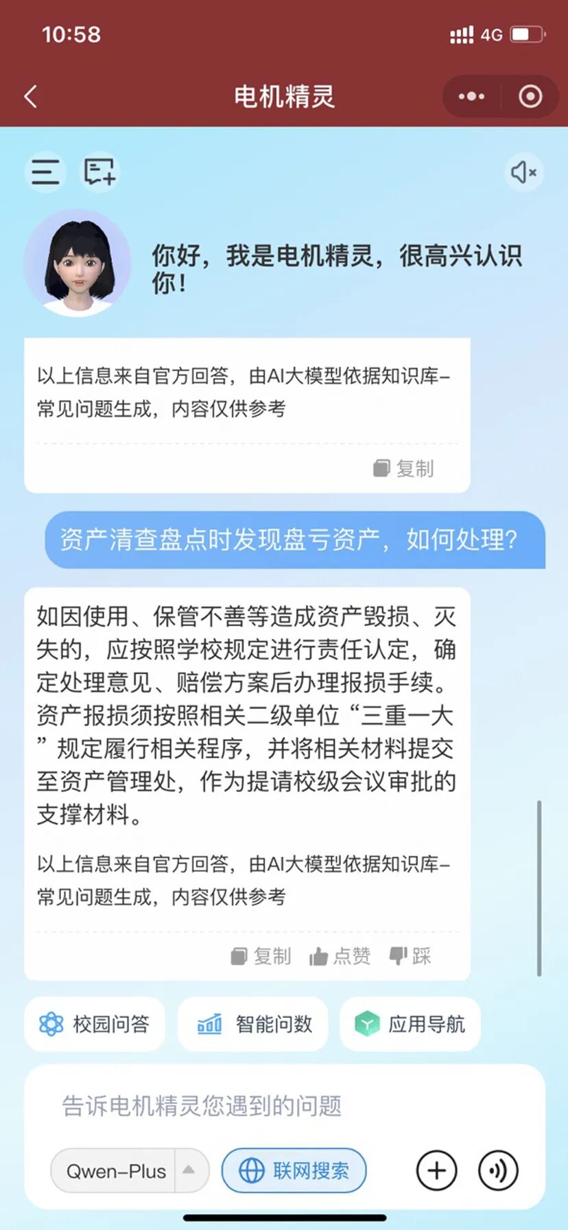 作为“AI赋能教育”的深度实践,“小科”已展现出显著运营成效。截至2024年底,累计服务师生达95.8万次,替代人工咨询约1.2万小时,校务咨询响应效率从30分钟缩至10秒,从迎新导览到学业支持,从管理优化到生涯规划,“AI小科”以全天候、全场景的智能服务,真正实现了服务即时化、运营高效化、体验人性化。