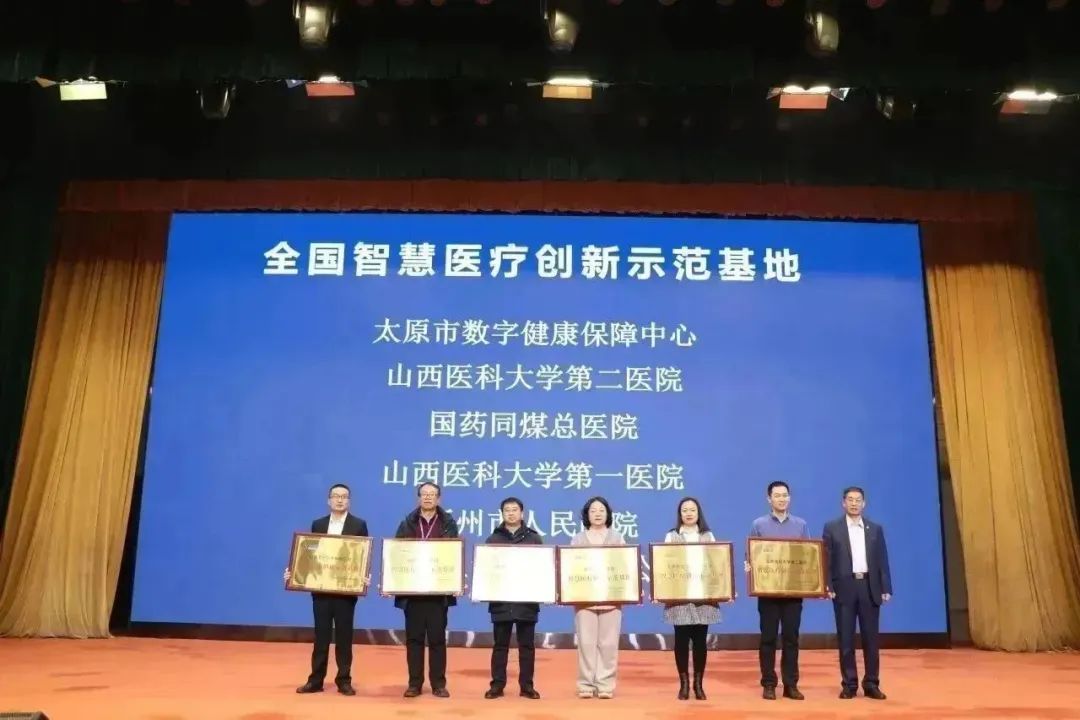 本届大会最后颁发了智慧医疗创新大赛(个人/集体)、智慧医疗创新示范基地、会议演讲交流证书等奖项,山西卫宁软件有限公司荣获全国智慧医疗创新示范基地称号。