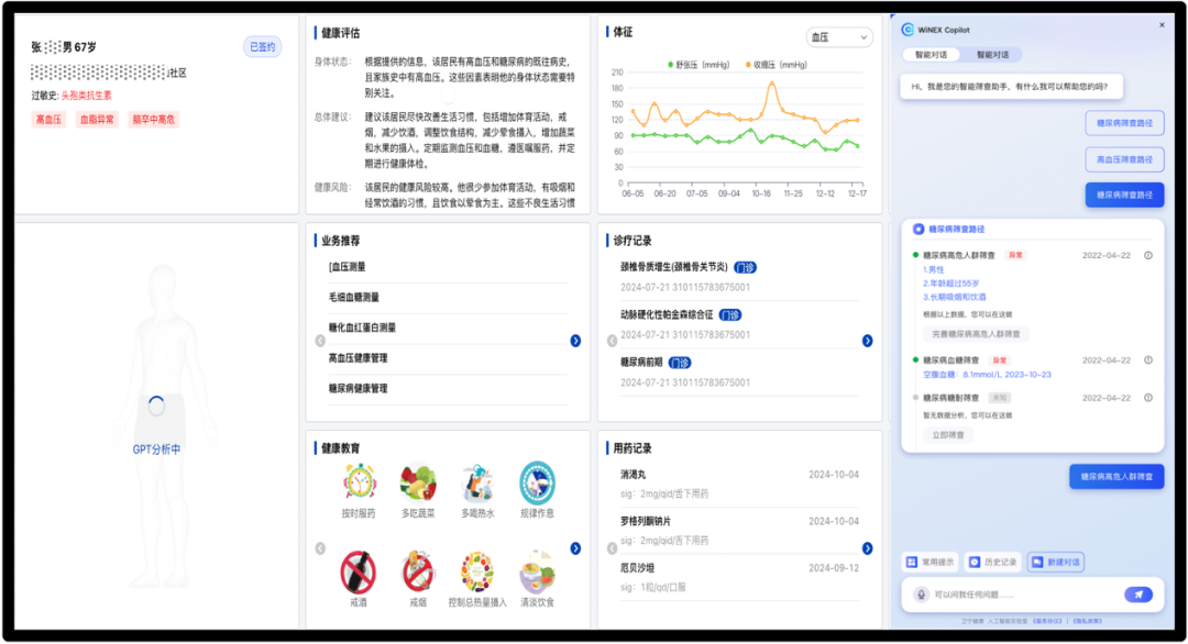 2025年,我们将深入贯彻《卫生健康行业人工智能应用场景参考指引》,依托借力DeepSeek 的WiNGPT 2.8大模型,在智慧决策、智能场景、生态联动等多个维度推动县域慢病管理业务更精准、更智能,不断创新技术与服务模式,为实现“健康中国2030”战略目标贡献更多智慧与力量。