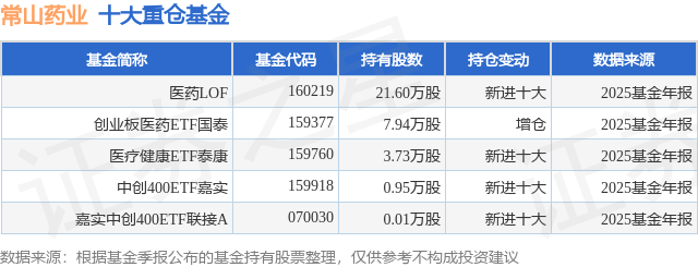 重仓常山药业的公募基金请见下表: