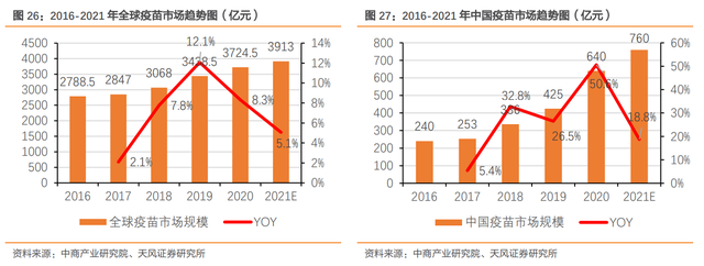 预计 2021 年中国疫苗市场规模(新冠疫苗除外)将进一步达到 760 亿元。