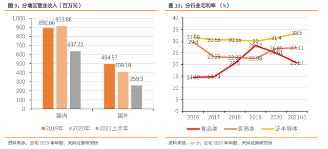 2021 上半年食品类、医药类和泛半导体的营业收入分别为 4.74 亿元、2.28 亿元、1.95 亿元。