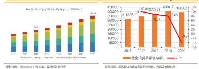 根据 Markets and Markets 的预测,无菌包装市场有望从 2017 年的 396.2 亿美元增长到 2022 年的 664.5 亿美元,CAGR 高达 10.89%,其中亚太地区将成为增长最快的市场。