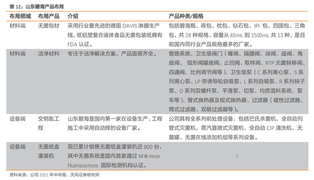 行业内有能力提供一体化配套方案的企业较少。山东碧海有望凭借技术优势以及“无菌包装材料+灌装机设备+设计工程”的整厂输出服务,逐步打开国产替代市场,进一步扩大市场份额。
