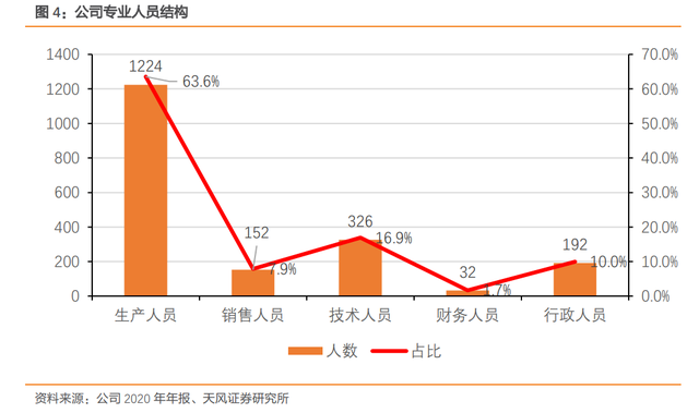 另外公司技术人员占比为 16.9%,是公司第二大专业群体。