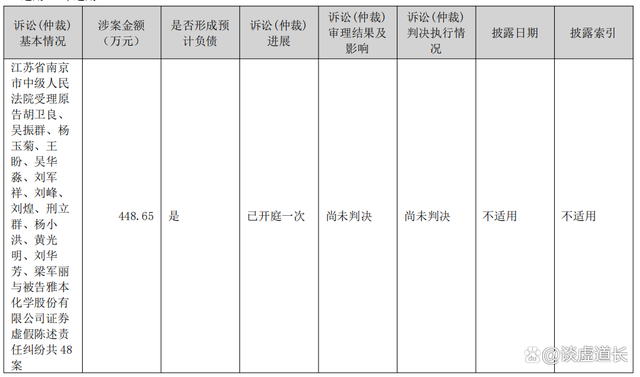 2022年8月26日,雅本化学公布了2022年半年度报告,当期实现营业收入10.97亿,同比下降5.28%,但是得益于毛利率的改善,公司实现净利润1.31亿,同比增长24.54%。同时半年报显示公司前期达芦那韦医药中间体业务夸大宣传引发的投资者索赔案已经开庭审理。