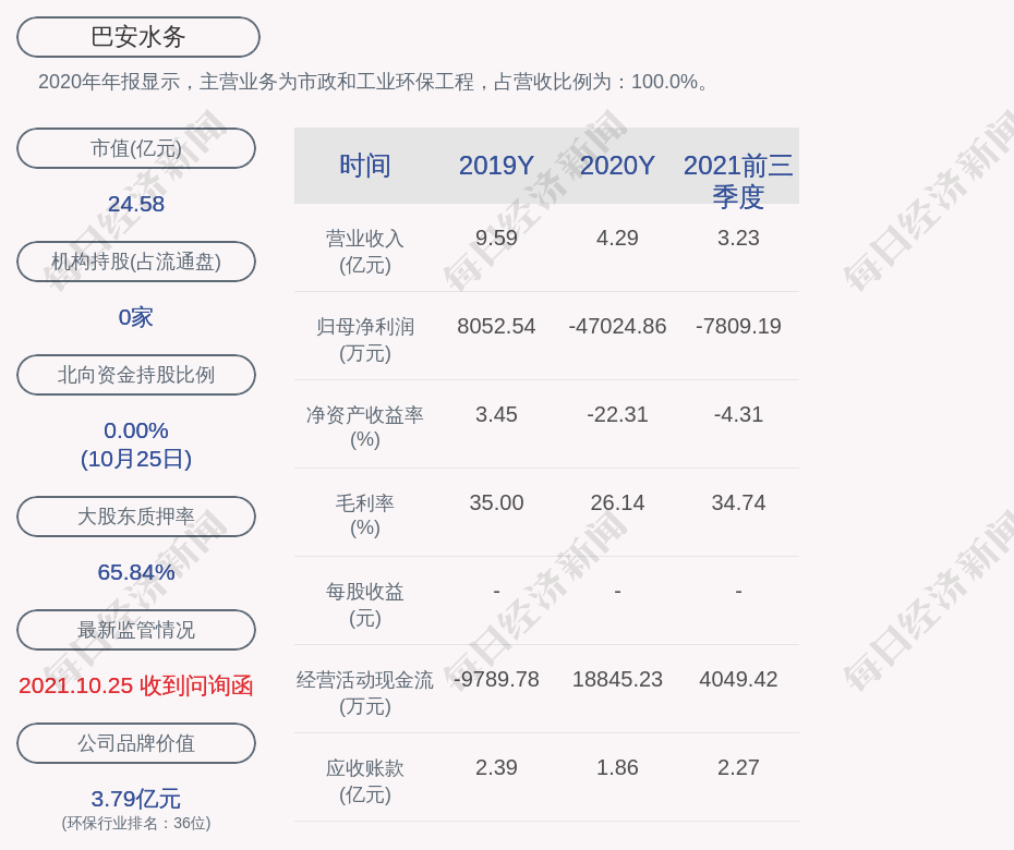 2020年年报显示,巴安水务的主营业务为市政和工业环保工程,占营收比例为:100.0%。
