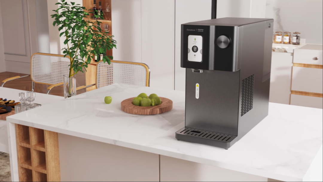 今年斩获德国设计奖的台上冰气泡净饮一体机,则创新性地融合冷、热、冰、气泡四种功能,将健康的日常饮水转变为充满仪式感的时尚生活体验。