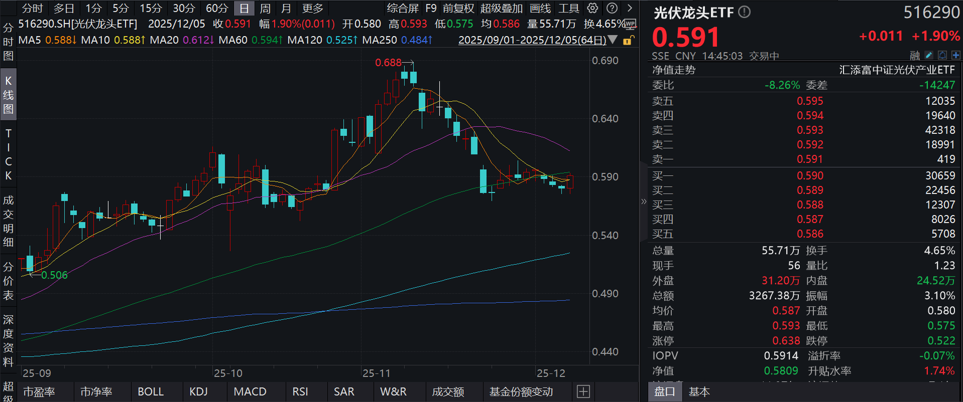 流动性方面,光伏龙头ETF盘中换手4.48%,成交3144.39万元。拉长时间看,截至12月4日,光伏龙头ETF近1月日均成交6129.56万元。