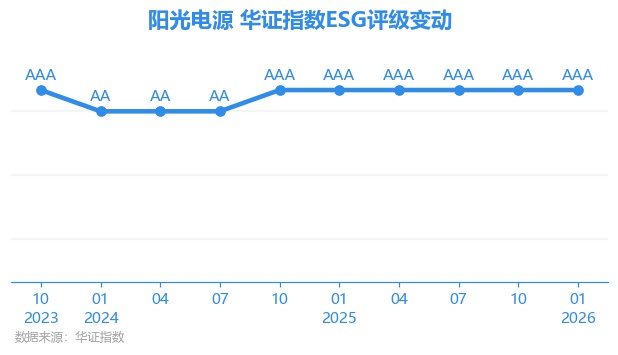 上海华证指数信息服务有限公司(下称“华证指数”)于日前对外发布了截至2026年1月31日的ESG评估结果。数据显示,阳光电源在本期评级中继续稳居AAA级别。据了解,华证指数的ESG评级共设置九个等级,由低至高依次为C、CC、CCC、B、BB、BBB、A、AA、AAA,其中AAA为最高等级,AA次之。与2025年10月31日公布的上一期结果相比,该企业本次评级未发生变化,仍处于最优梯队。