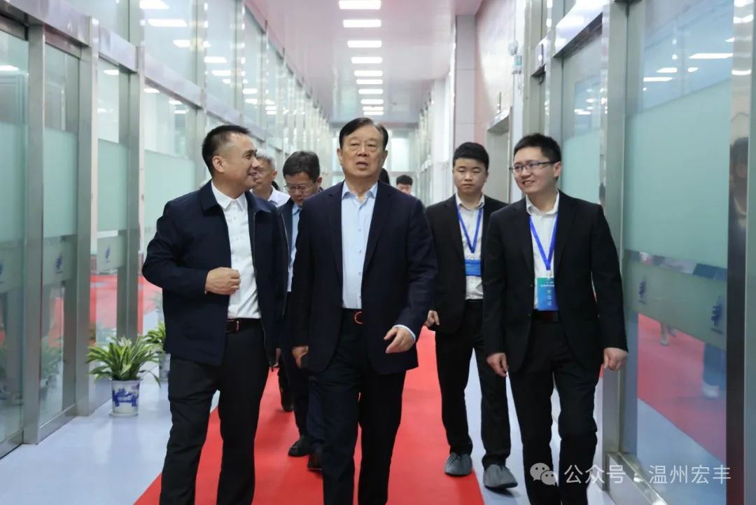 ▲董事长陈晓陪同干勇院士参观温州宏丰