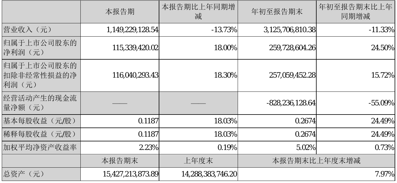 挖贝网10月25日,苏交科(300284)近日发布2021年前三季度报告,报告期内营业收入3,125,706,810.38元,同比减少11.33%;净利259,728,604.26元,同比净利增加24.50%。