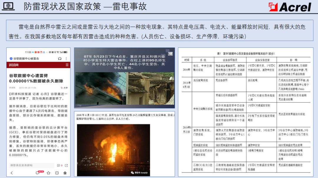 雷电,作为自然界最具破坏力的放电现象之一,以高电压、大电流、短释放时间的特性,时刻威胁着电力、通信、交通、石化等各行各业的安全运行。从谷歌比利时数据中心因雷击导致数据丢失,到国内某化工企业因雷击引发火灾,无数案例警示我们:传统防雷手段已难以应对日益复杂的现代安全需求。