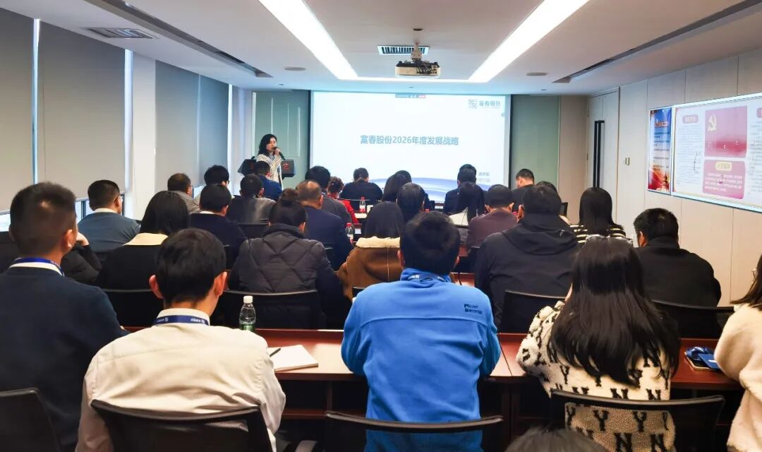 1月15日下午,富春股份2026年度战略宣讲会以“线上+线下”融合形式顺利召开,旨在系统传达年度战略研讨成果,推动公司发展共识深入全员、有效落地。公司总裁黄孝銮担任主讲,全体员工共同参会学习。