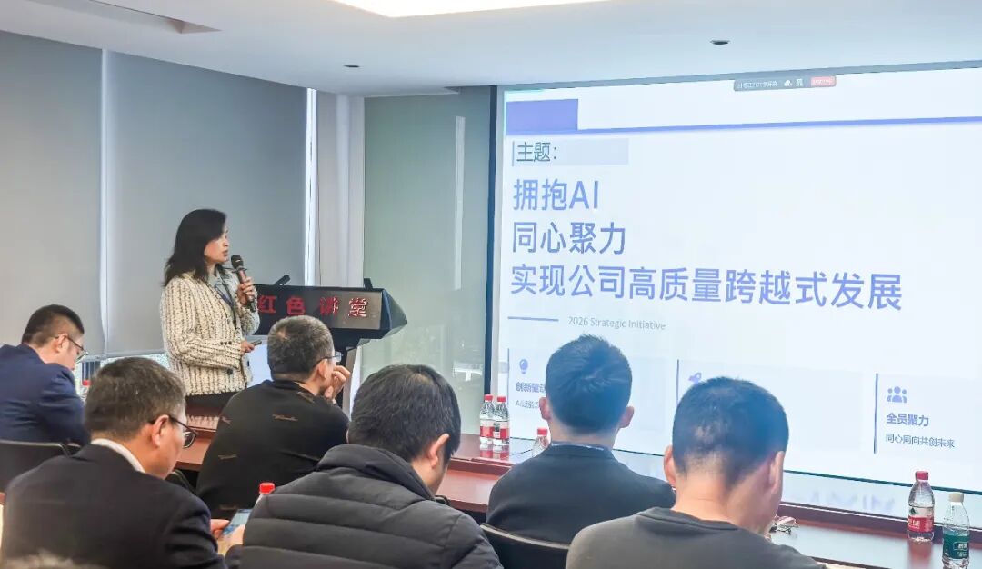 宣讲会围绕公司年度战略研讨会凝聚的核心共识展开。黄孝銮总裁在会上指出,经管理层深入研讨,公司已在未来发展的关键议题上形成高度一致,进一步廓清了战略方向与落地路径。基于对宏观趋势的洞察与自身能力的系统梳理,公司正式确立“双主业驱动+创新突破”战略体系,核心目标为拥抱AI、同心聚力,推动实现高质量跨越式发展。