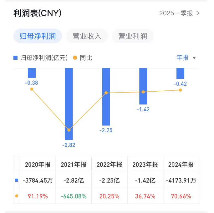 拉长时间线来看,2020年-2024年,ST长方归母净利润为负。