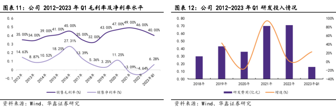 盈利能力方面, 2022年,公司实现销售毛利率45.63%,同比持平,公司自2012年起至今毛利率稳定浮动;实现毛利额19,860.31万元,同比增长4.24%;实现销售净利率-4.64%,实现净利润-2,020.97万元,同比减少813.23万元,剔除对参股公司投资损失后公司营业利润为1,551.62万元,实现同比增长。2023年Q1,公司实现销售毛利率40.18%,同比持平;实现毛利额5,871.36万元,同比增长5.13%;实现销售净利率6.28%,实现净利润933.41万元,同比增长2.09%;公司在一季度对参股公司投资损失1,580.51万元,主要原因为存储芯片行业属于周期性行业,参股公司忆恒创源、泽石科技目前处于行业下行周期。剔除对参股公司投资损失因素后,公司实现营业利润2,658.22万元,同比增长47.45%。