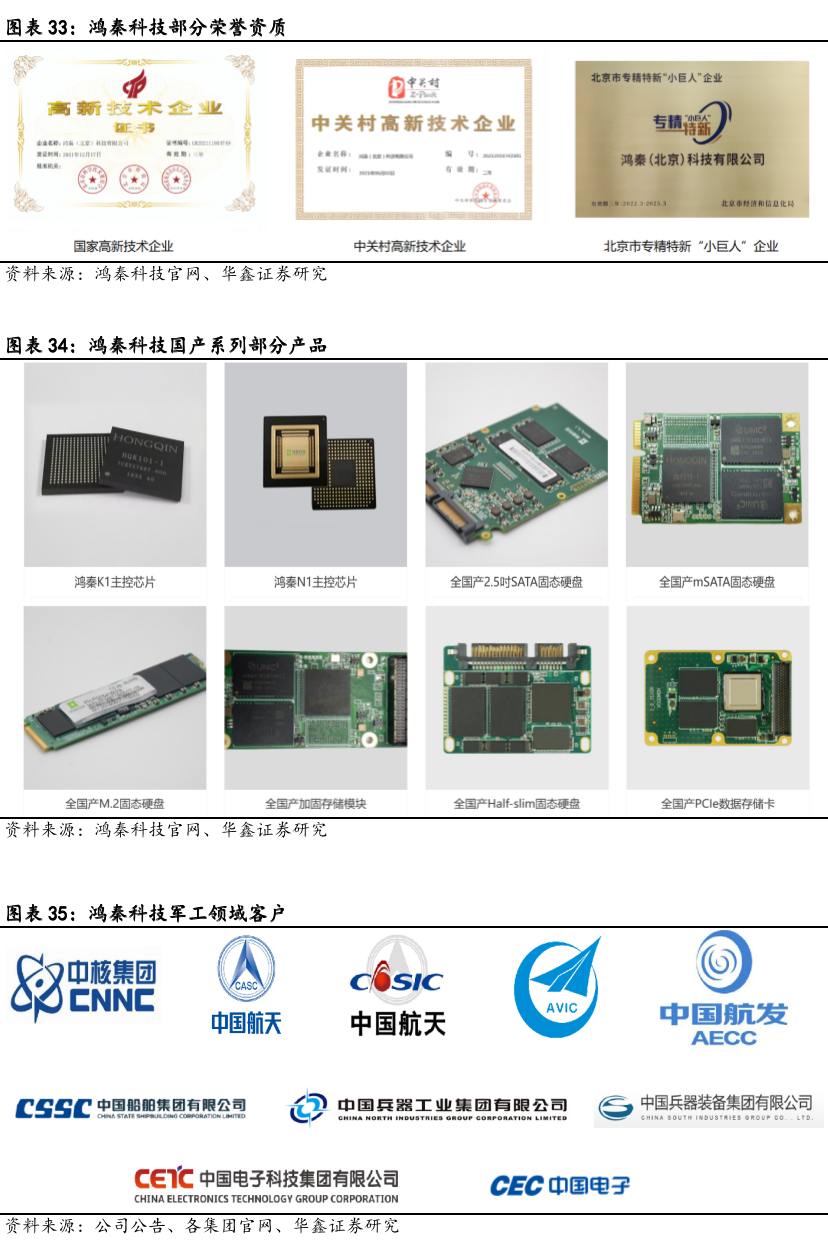 公司特殊行业积累深厚。公司扎根特殊行业十余年,是少数在特殊行业拥有全部相关资质的专业存储厂商,公司存储系统产品及方案已经覆盖了特殊行业的主要核心业务,在关键细分领域均建立了具有示范效应样板工程,在通用指挥装备领域为用户提供了一系列数据中心级存储产品。公司全资子公司鸿秦科技是国内最早进入军工固态存储领域的专业存储厂商之一,在军用级SSD上有着领先的技术和丰富的经验,其产品广泛应用于十大军工集团,公司通过整合鸿秦科技在装备部件领域的深厚经验,充分发挥双方在特殊行业的独特优势,为客户提供多层次全方位的存储产品、解决方案与服务。