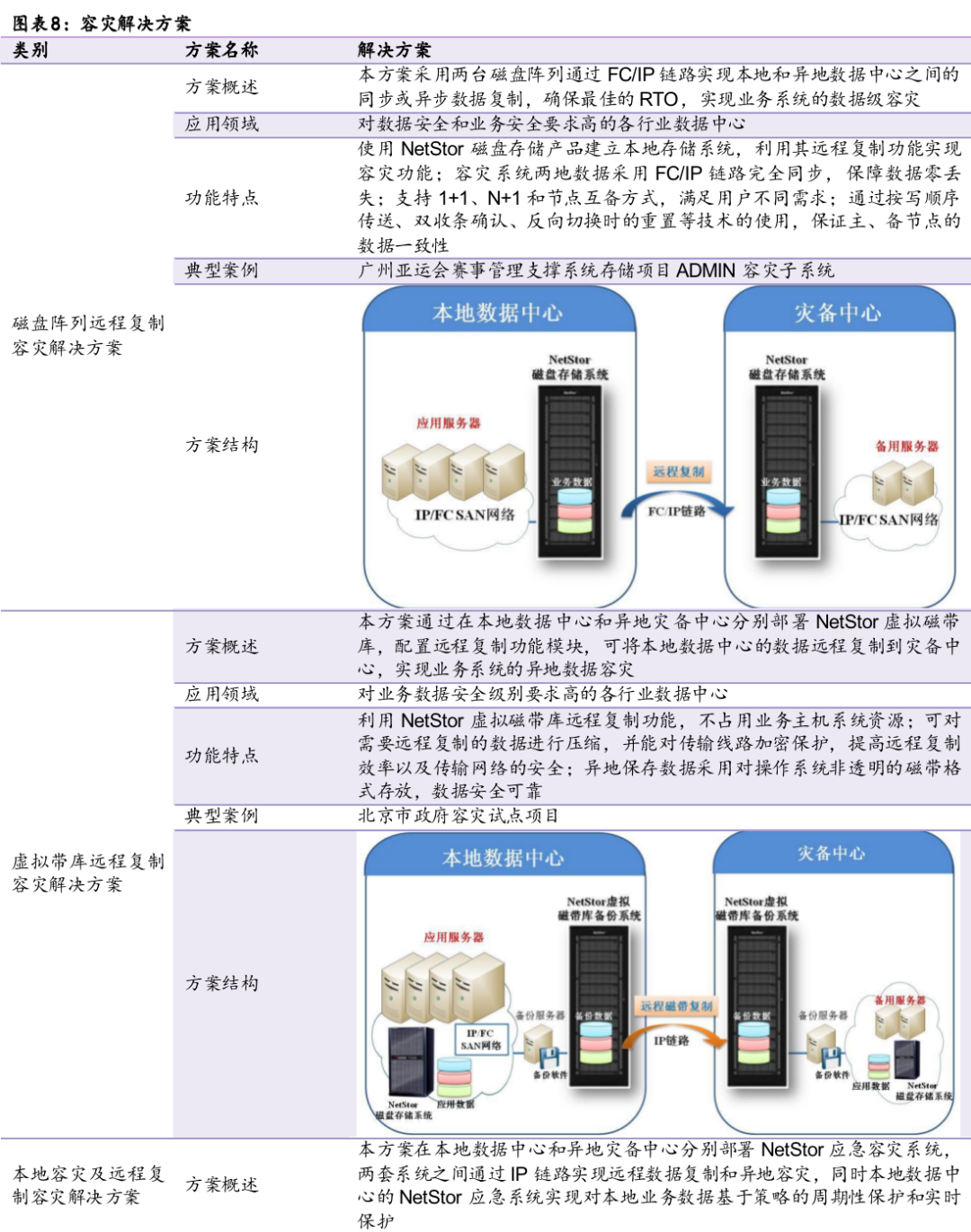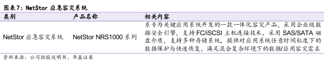 公司在容灾领域的产品及服务主要包括Netstor应急容灾系统等产品、各类容灾解决方案和相关技术服务。