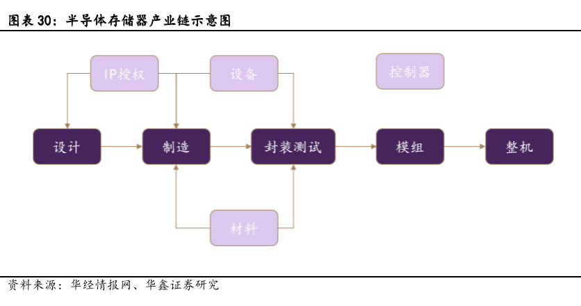 半导体存储器产业链分为两段。在前半段中,全球主流的存储器厂商普遍采用IDM模式(设计、制造、封测一体),主要原因是存储器行业特征是具有较强的规模效应、技术竞争激烈、产品升级迭代速率快。IDM模式能够更好的桥接设计模块和制造模块,在整体效率上优于Fabless + Foundry分工,优势在技术演变革新的时候体系尤为明显。