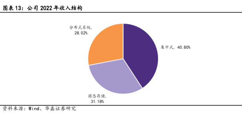 从公司收入结构来看,依托公司自主创新核心技术积累,系统级存储连续三年保持高速成长,已成为收入增长主要驱动力。2022年,公司实现系统级存储收入 29,958.42 万元,同比增长55.69%,已成为驱动业绩增长的主要因素。随着AI、大模型、大数据技术快速发展,基于深度学习和分布式的新兴应用,对存储的高并发、低延迟、可扩展性和容错性提出更高的要求,不断催化分布式存储演进,公司在原有集中式产品优势的基础上,打造了存储系统新的业绩增长点。2022年集中式存储系统实现收入17,760.22万元,占营业收入比例为40.80%;分布式存储系统实现收入 12,198.20万元,占营业收入比例为28.02%,同比增长790.77%,实现飞速增长;固态存储实现收入13,570.13万元,占营业收入比例为31.18%。全资子公司鸿秦科技稳扎军工固态存储领域,截至2023年4月28日,在手订单15,820.68 万元,同比增长 80.64%,业务发展符合预期。