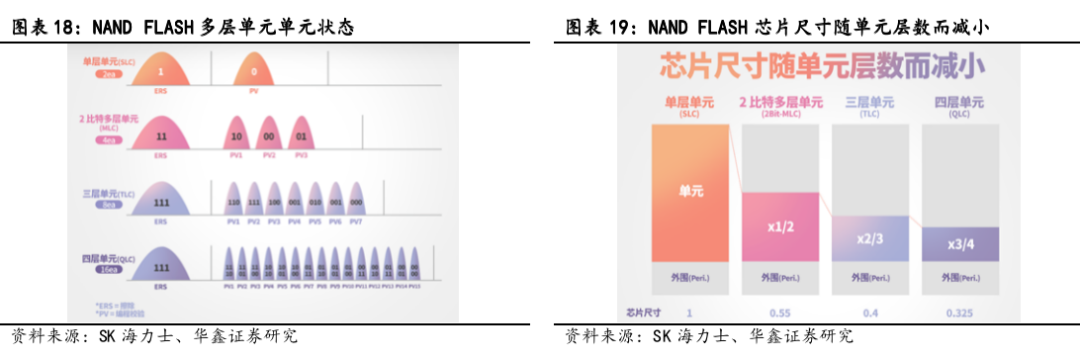 近年来,SK海力士开发了4D NAND FLASH技术,能够在3D NAND FLASH上进一步增加容量,4D NAND在3D NAND单元下方构建一个外围电路,由此降低了外围电路的使用面积,进而在降低NAND成本的同时能够将存储容量最大化。目前SK海力士等业内领先企业已经实际128层的产品开发以及投产准备,并且正在往更多层的道路上高歌猛进。