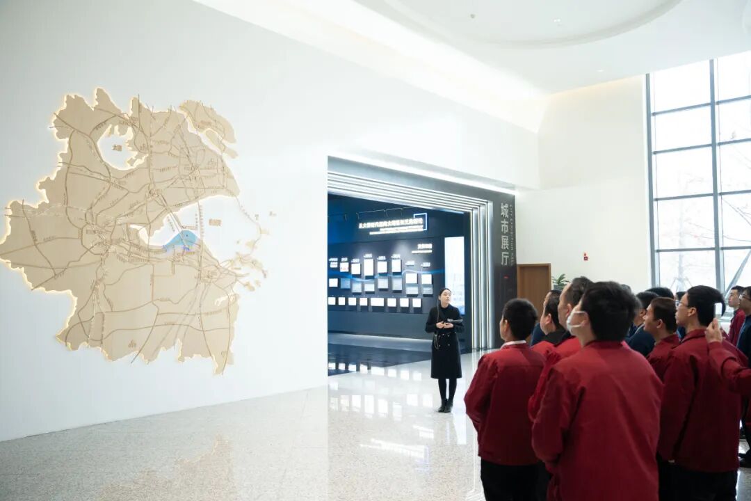 随后,大家前往宁波前湾新区城市展览馆进行参观。展馆内,通过工业产品实物陈列、历史影像资料和多媒体展示,全面呈现了新区的城市规划、经济社会发展及“1341”产业体系建设情况。前湾新区作为长三角一体化发展的重要节点,其产业发展与城市规划的协同理念为管理层提供了新的视角。凭借良好的产业基础和较完善的城市功能,以这种融合发展模式为企业提供更加优质的生态环境。