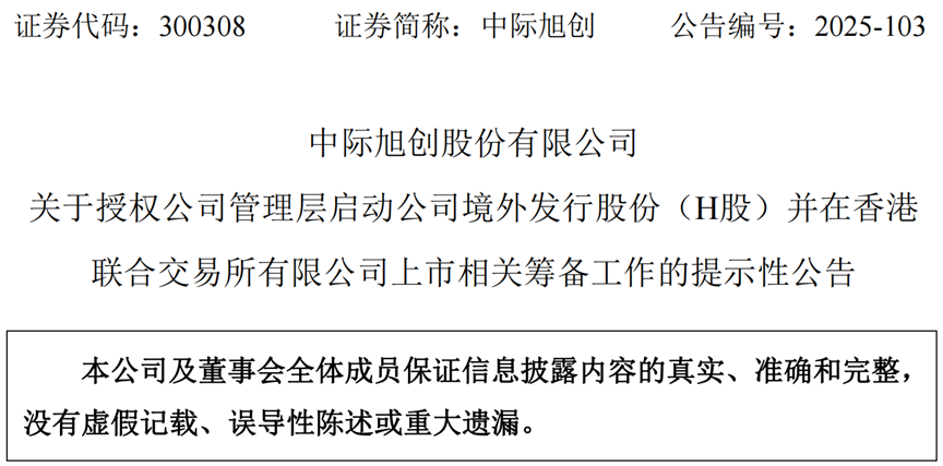 11月10日,就在AI与光通信板块的热浪尚未散去之时,中际旭创股份有限公司(300308.SZ,简称“中际旭创”)发布了一则意味深长的公告:公司董事会已授权管理层启动H股上市的相关筹备工作。