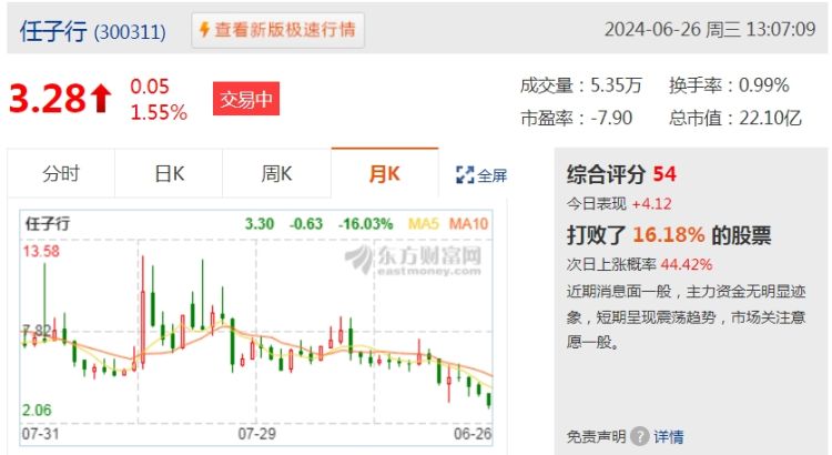 二级市场方面,任子行股价报3.28元/股,今年以来呈一路下跌趋势,屡创新低。
