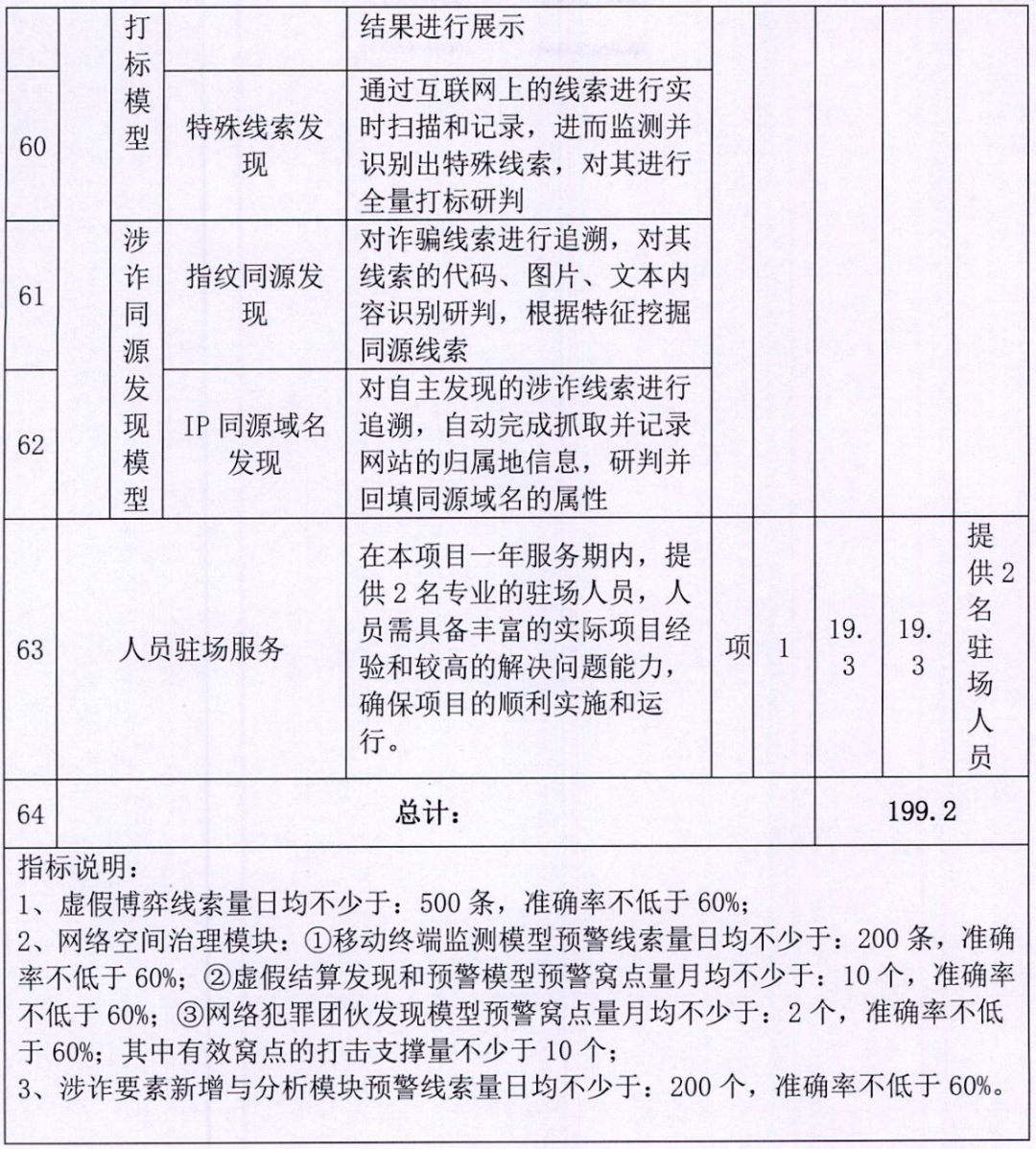 本项目主要服务于郑州市公安局反诈部门,为郑州市公安局涉诈案件打击提供技术支持,通过引入“新型网络犯罪预警打击系统服务”,为郑州反诈支队提供简洁、高效、多维一体的反诈服务能力,以 SaaS 服务方式提供对新型网络犯罪开展研判打击,切实解决公安反诈业务中资源有限、数据单一、侦破周期长、成本高等痛点,助力郑州市公安局更好地守护市民的财产安全。本次项目建设主要包括如下: