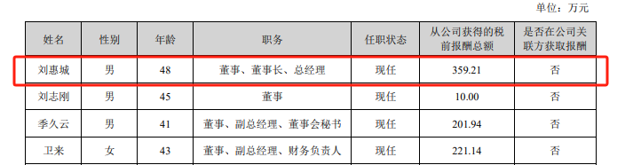 公告显示,刘惠城现任公司董事长、总经理。截至本公告日,刘惠城持有公司股份1.69亿股,占公司总股本的6.23%。记者注意到,刘惠城2024年从公司获得的税前报酬总额为359.21万元,比2023年的313.88万元有所增加。