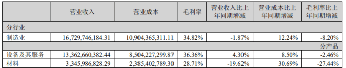 另一主营业务材料包括了碳化硅衬底材料、蓝宝石材料、半导体坩埚、光伏坩埚等收入,该业务2024年营收同比下滑19.62%至33.46亿元,毛利率同比大降27.44个百分点至28.71%。