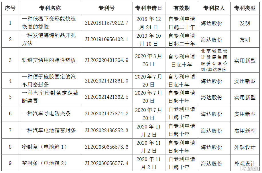 以上2项发明专利、5项实用新型专利和2项外观设计专利技术,是公司为了完善生产工艺技术、提高产品质量稳定性、外观应用而展开的研究,是公司现有产品加工技术的进一步发展和延伸。