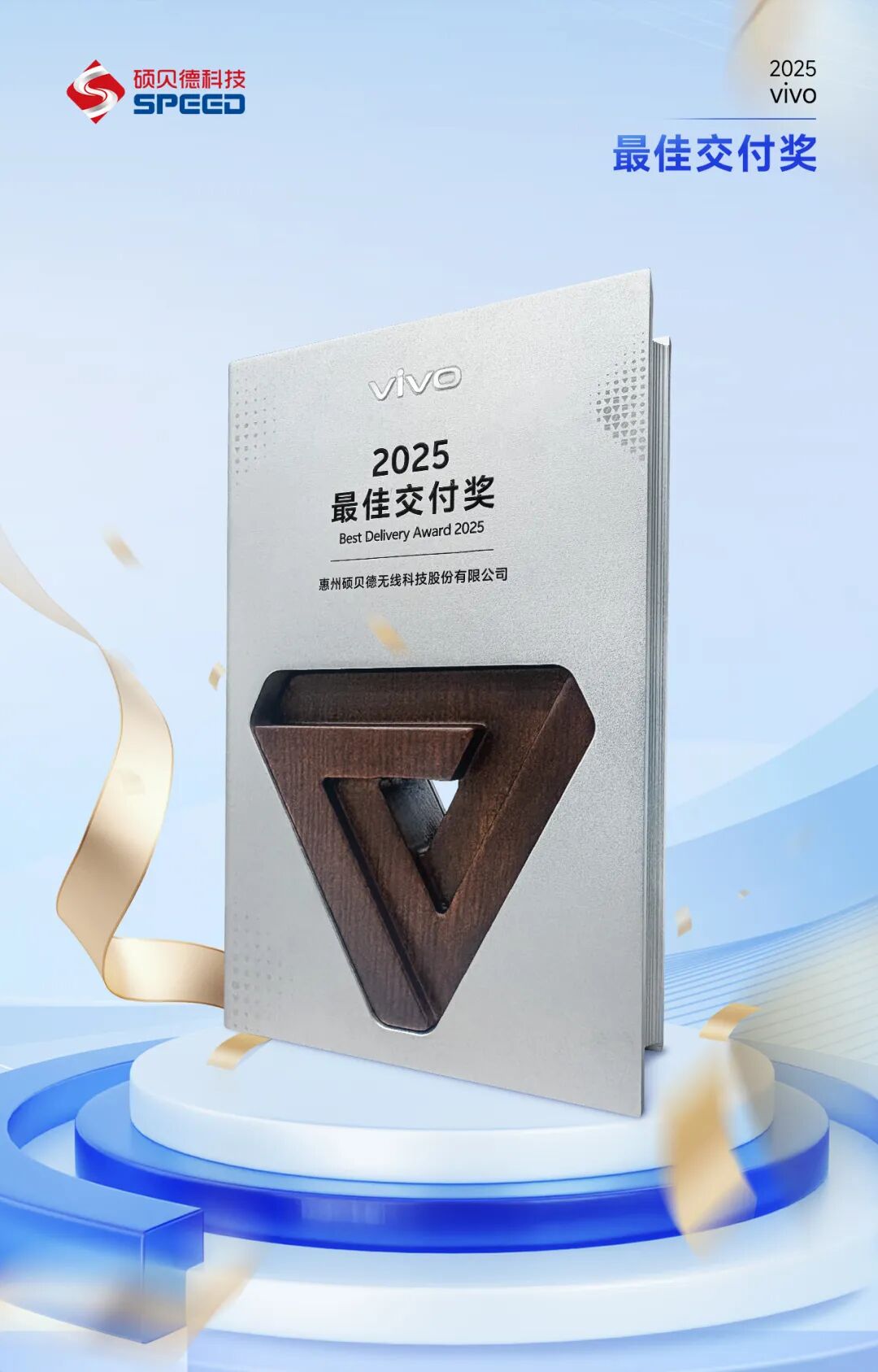 该奖项不仅是vivo对硕贝德长期稳定交付高品质产品的充分肯定,更是对硕贝德卓越创新能力与深度协同价值的高度认可。
