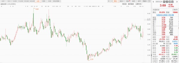 9月8日收盘,旋极信息(300324.SZ)每股收于3.69元,涨5.73%;在前几个交易日股价出现较大幅度下挫之后,终于迎来了单日大涨。目前,旋极信息总市值为63.75亿元。