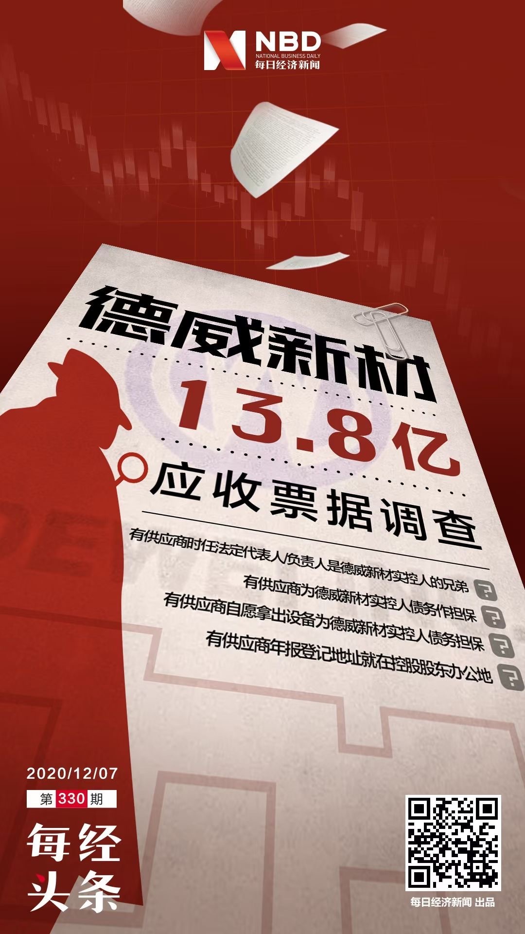 去年12月7日,《每日经济新闻》发布德威新材13.8亿应收票据的万字调查。